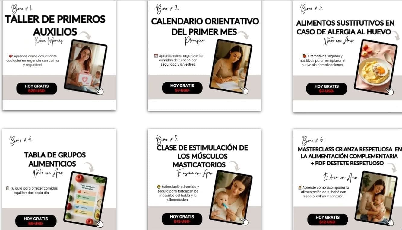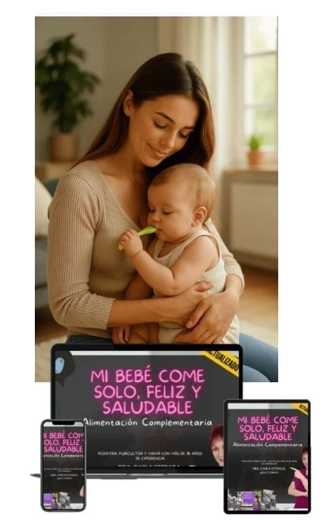Nuestro curso con +40 clases en video es ideal si estás comenzando la alimentación complementaria y quieres hacerlo bien desde el principio, sin confusión, sin miedo, y con respaldo profesional.